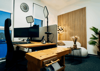 Im Businesscenter Medienwerk 15 profitieren Sie von modernen Büroräumen, flexiblen Konferenzlösungen und einem professionellen Umfeld, das Ihnen den Arbeitsalltag erleichtert. Ob Einzelbüro, Teambüro oder Coworking – bei uns finden Sie die passende Umgebung für konzentriertes und effizientes Arbeiten.