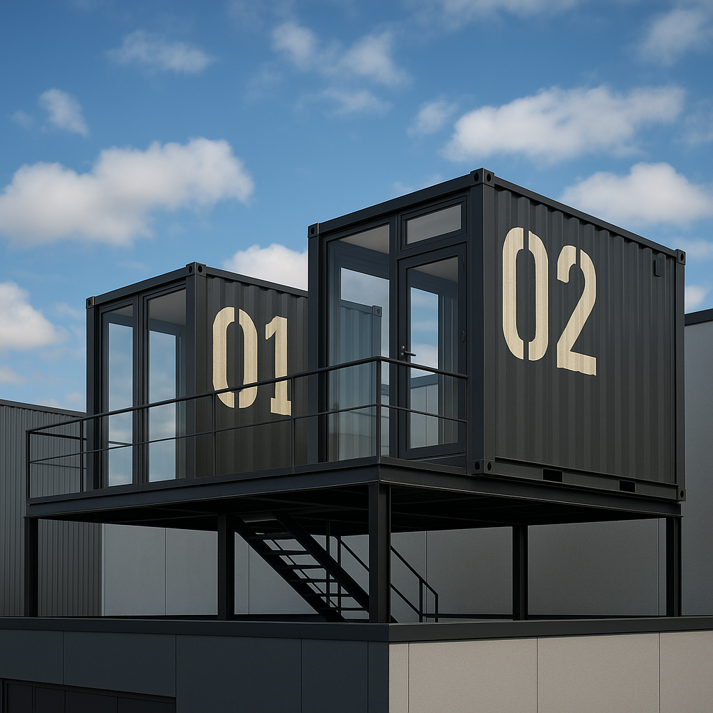 Auf dem Dach des Business Centers entstehen zwei exklusive Design-Cubes – stylische Container-Büros mit Panoramafenstern, hochwertigem Innenausbau und Industrie-Charme. Ideal für Kreative, Startups, Freelancer oder Teams, die Inspiration über den Dächern von Tostedt suchen.